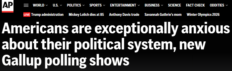 盖洛普调查:年轻人忧经济年长者爱政治,美国民众对政治体制异常焦虑